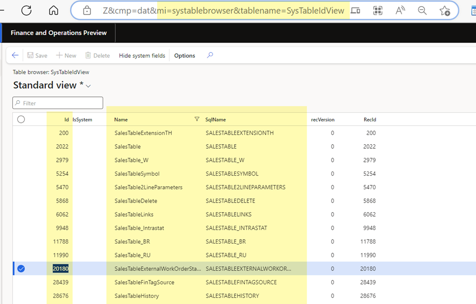 How to View a Table in D365FO